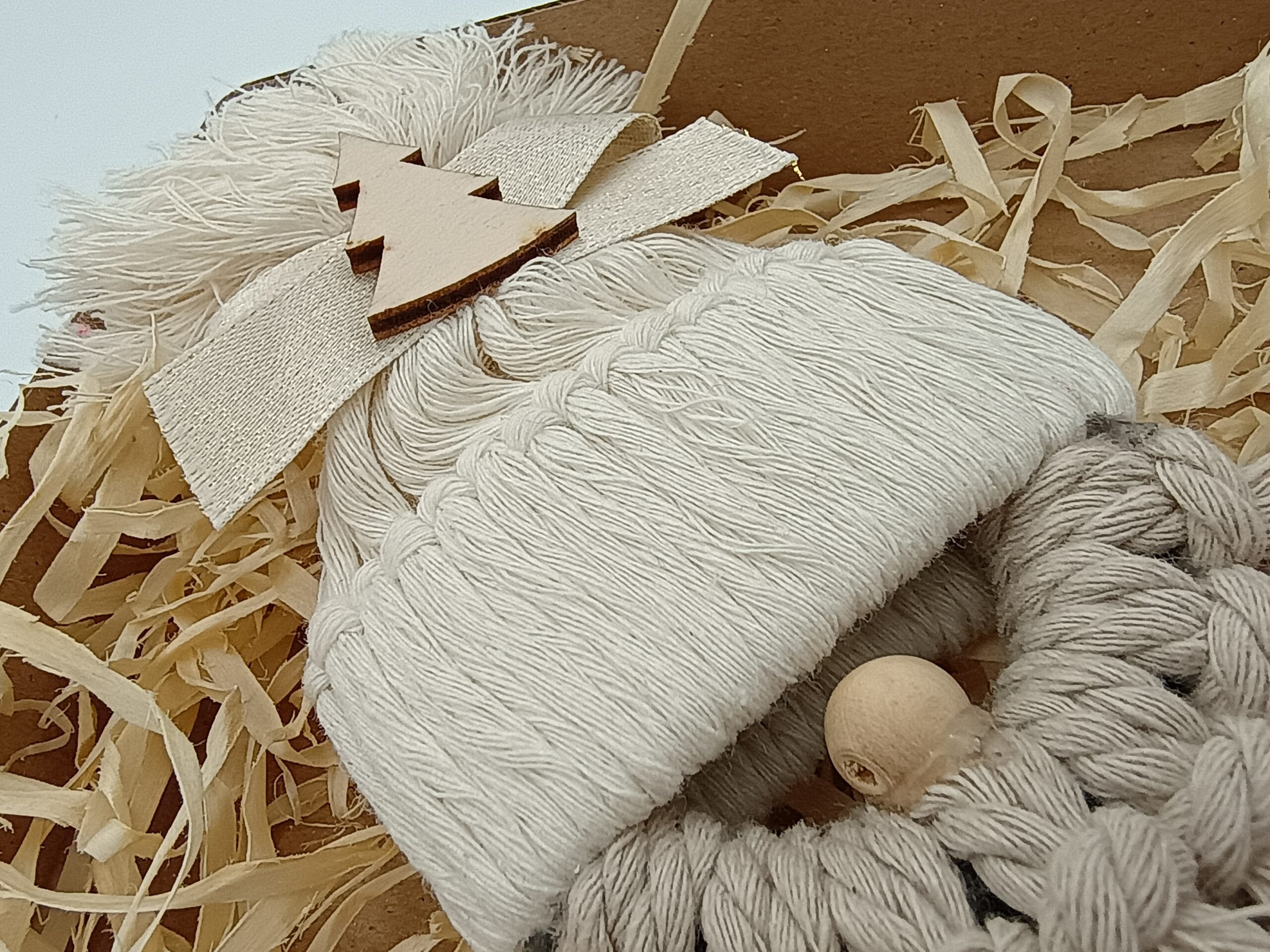 Ozdoby wykonane są z naturalnych materiałów – bawełnianych sznurków, włóczek i drewna (sklejki). Są to materiały przyjazne środowisku, trwałe i bezpieczne. Możesz bez obaw zawiesić je na choince, wiedząc, że są wykonane z wysoką starannością i dbałością o każdy szczegół.